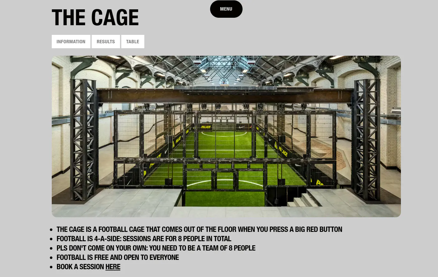 Below the skatepark, the floor mechanically raises to reveal a hidden underground 4-a-side football cage.