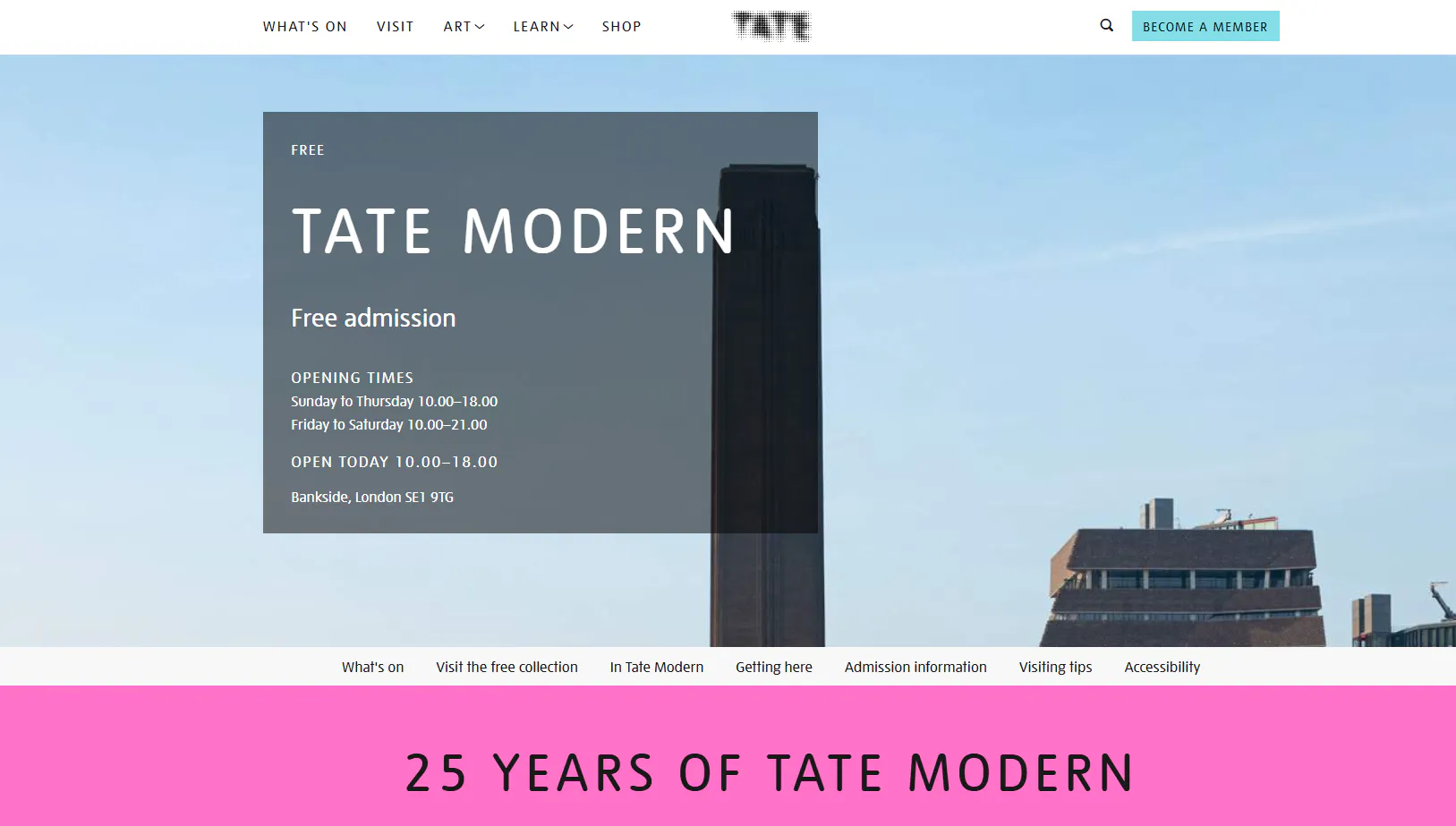 Location: Bankside, London SE1 9TG (Walk across the Millennium Bridge from St Paul's).